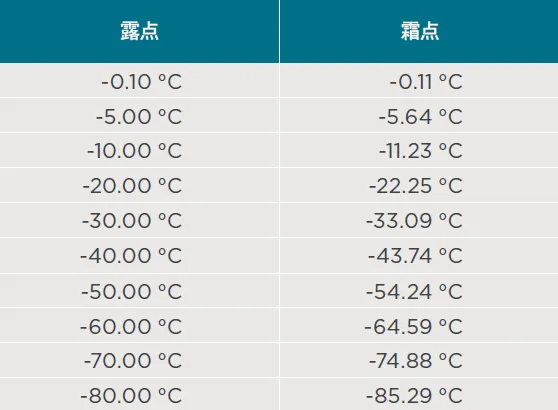 在高于大气压的压力条件下测量气体的露点温度时,我们会用到“压力露点”这一术语。它是指气体在压力环境下的露点温度。这一点非常重要,因为改变气体压力会改变该气体的露点温度。